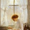 This beautiful painting captures the sense of charity and warmth which is associated with the work of Sarah Granger Kimball working by her window sewing and repairing shirts for those working to build the Temple. In her window you can see the Nauvoo Temple under construction in the distance. Sarah Granger Kimball was a woman who played a vital role in establishing the female Relief Society of Nauvoo, a mighty organization dedicated to charitable acts and individual development. Today the Relief Society of The Church of Jesus Christ of Latter-day Saints carries on Sarah’s touching and powerful legacy.
